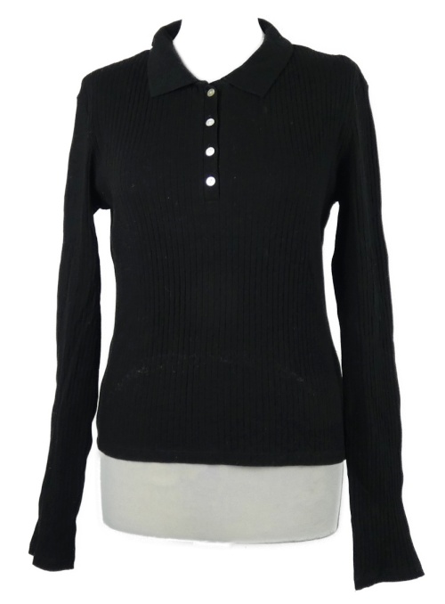 Dámske čierne rebrované crop tričko s golierikom Zara