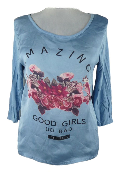 Dámske svetlomodré tričko s kvetmi a nápismi Lottie Loves