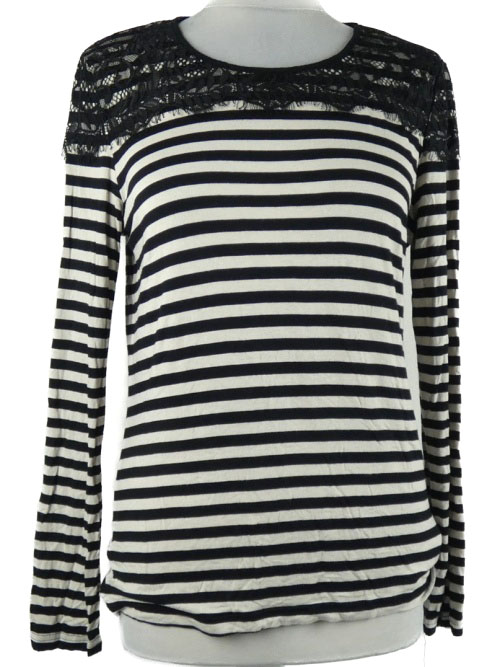 Dámske čierno-smotanové pruhované tričko s čipkou Oasis