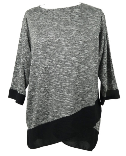 Dámske sivo-čierne melírované úpletové tričko s šifónovymi volániky Quiz