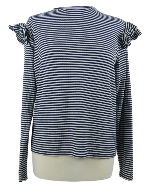 Dámske bielo-tmavomodré prúžkované rebrované tričko s volánikmi George