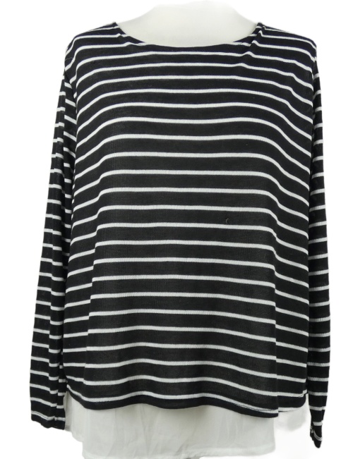 Nové - Dámske čierno-biele pruhované úpletové tričko s šifonovou vsadkou Atmosphere