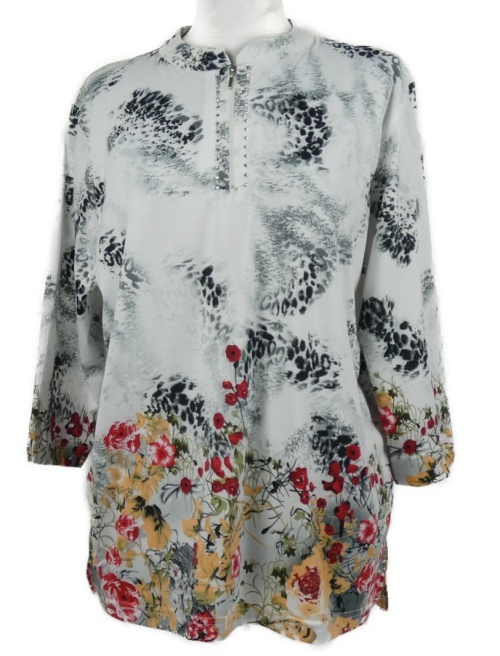 Dámske bielo-sivé kvetované tričko