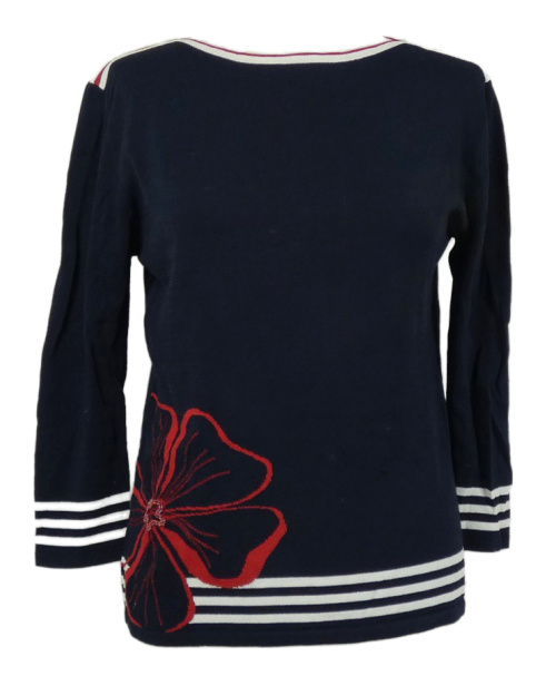 Dámsky tmavomodrý ľahký sveter s pruhmi a kvetinou Wallis