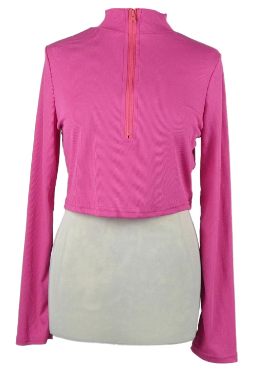 Dámske ružové rebrované crop tričko s rolákom a zipsom Shein