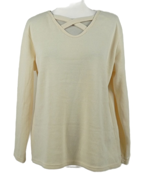 Dámske smotanové rebrované úpletové tričko so zkříženým výstřihem