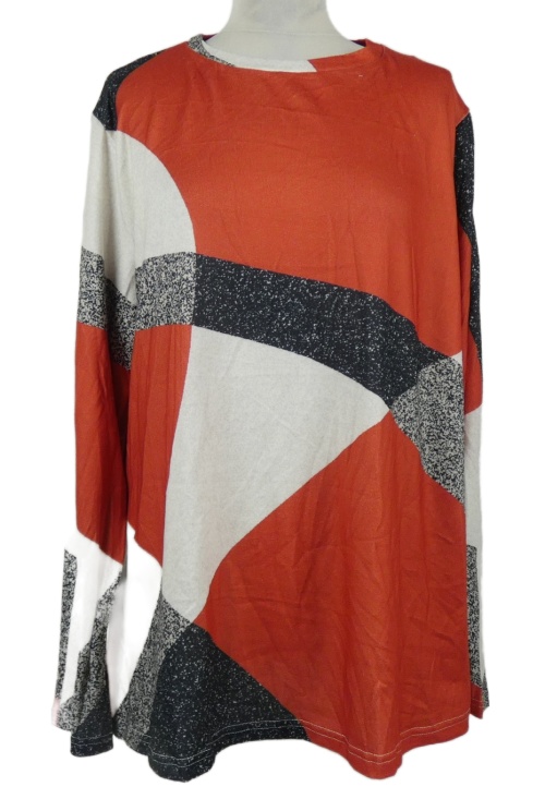 Dámske červeno-bielo-čierne vzorované úpletové tričko
