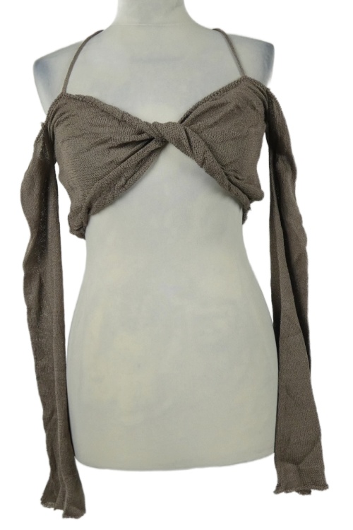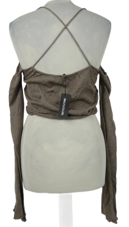 Nové - Dámske hnedé pletené crop tričko PrettyLittle Thing