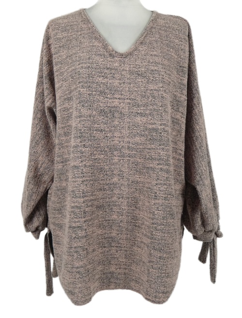 Nové - Dámske svetloružová -čierne melírované úpletové tričko s mašľami