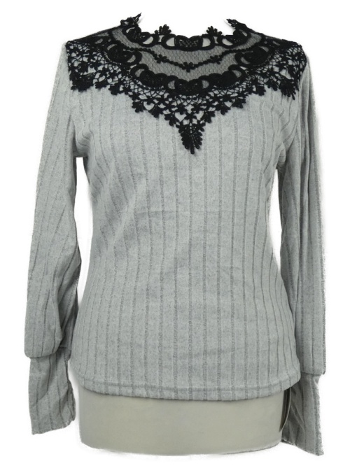 Dámske sivé rebrované úpletové tričko s čipkou Emery Rose