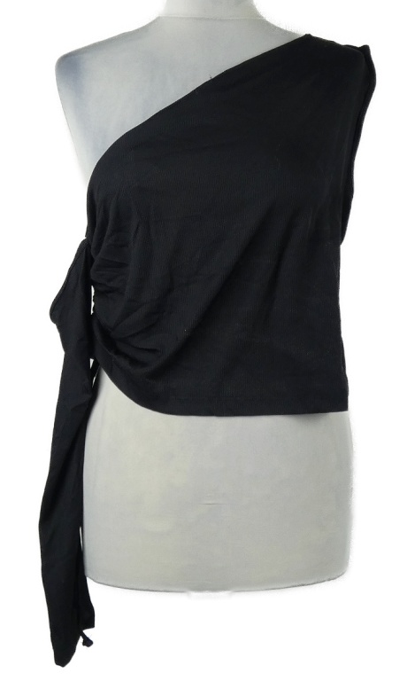 Nové - Dámske čierne rebrované crop asymetrické tričko Primark