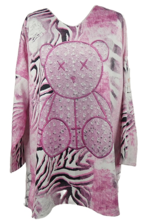 Nové - Dámska ružovo-čierne vzorované tričko s medvedíkom