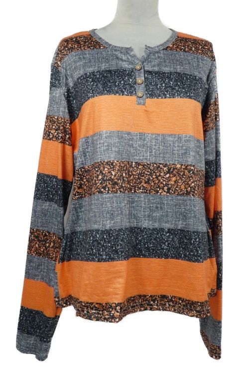 Dámske oranžovo-modré pruhované tričko s gombíky