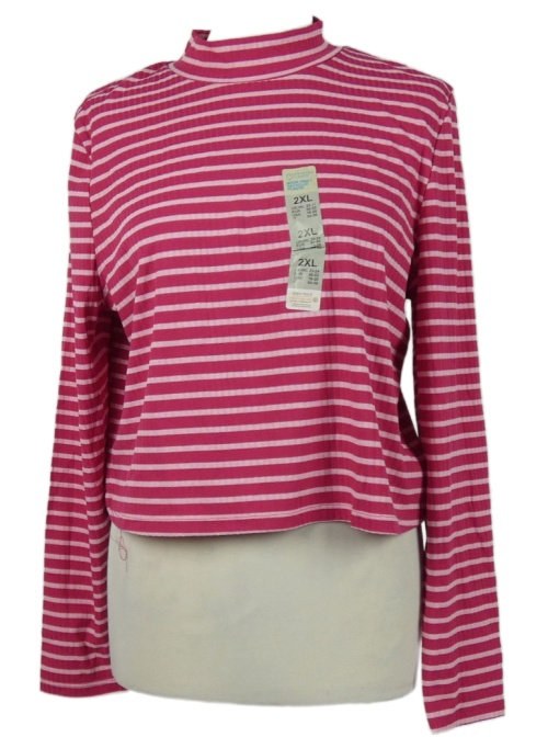 Nové - Dámske fuchsiovo-ružové pruhované rebrované crop tričko Primark