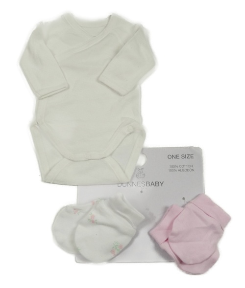 3set - Bílé body + 2x rukavice - bílé + růžové - nové 50/56