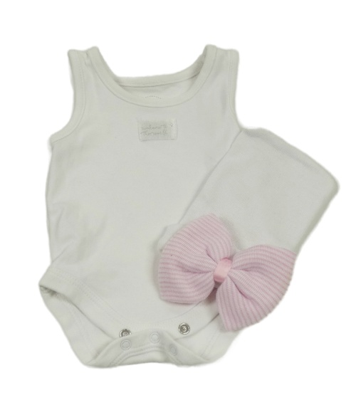 2set - Biele body s nášivkou + biela čapica s mašlou