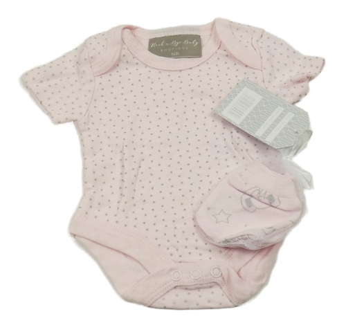 Nové - 2Set - Svetloružové body s hvězdičkami + rukavice so sloníky Rock-a-Bye Baby