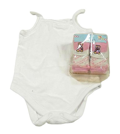2set - Biele body + bielo-ružové ponožky s medvěďom