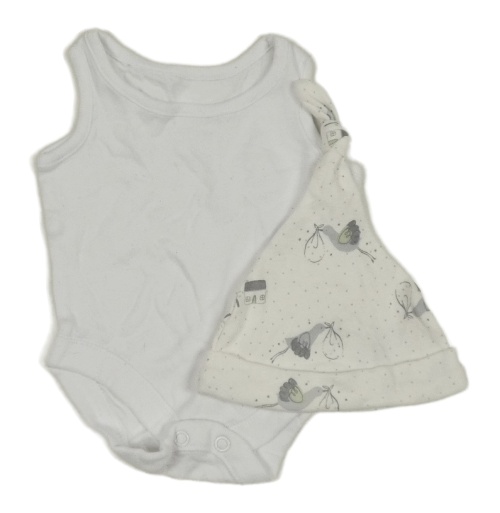 • 2set- biele body+bílá bodkovaná á čapica s vtáčky