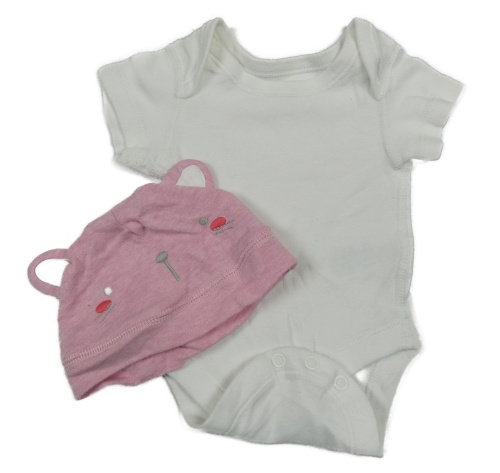 • 2set - Smotanové body + ružová melírovaná bavlnená čapica s ňufáčikom