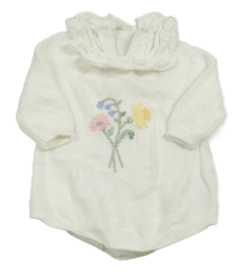 Biele pletené body s kvietkami a volánikmi Nutmeg