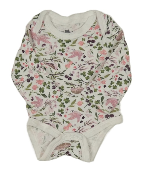 Bielo-zeleno-ružové kvetované body s vtáčky