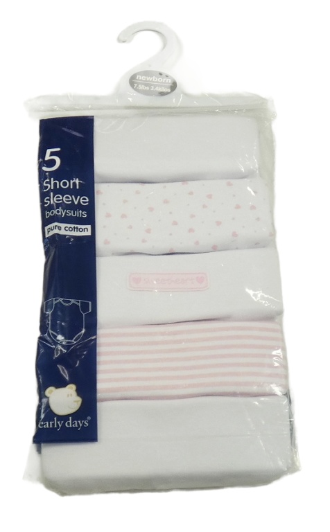 Nové - 5x bielo-svetloružové body s krátkým rukávom Early Days