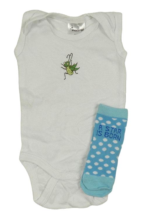 • 2set - Biele body s hmyzem + modré bodkovaná é ponožky s nápisom