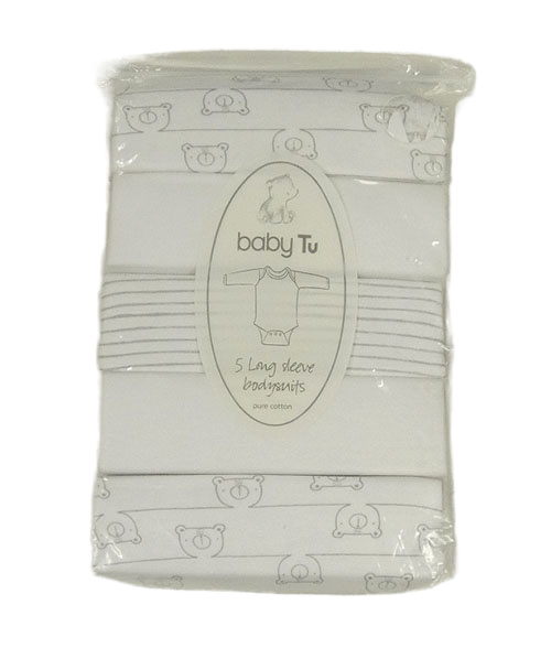 Nové - 5x - Body - 2x- Bílé, 2x - bílo/šedé s medvídky, 1x - bílo/šedé pruhované Tu