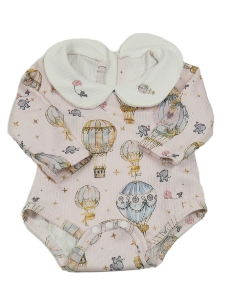 Svetloružové rebrované body s balony a sloníky a golierikom SHEIN