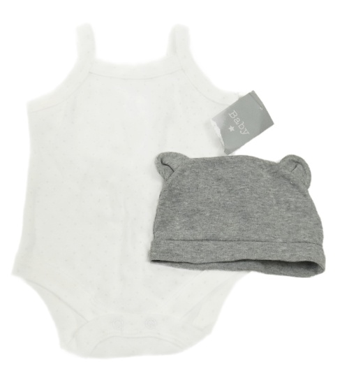 2 set - biele bodkovaná é body + sivá čapica s ušima
