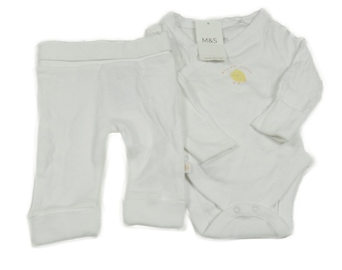 Nové - 2set - Biele rebrované zavinovací body s ptáčkem + tepláky M&S