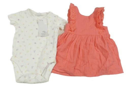 2 set - biele rebrované body s květinami + ružové šaty s madeirou