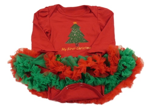 Červeno-zelené body so stromom a tylovou vrstvenou sukní