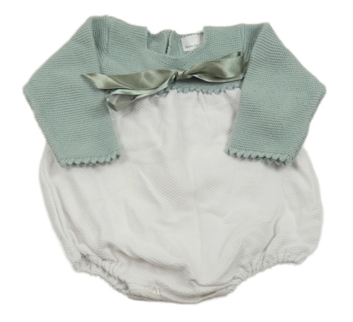 Bielo-světlemodrošedé vzorované bavlněno/svetrové body s mašlou