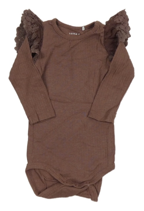 Vínové rebrované body s čipkovymi volániky Name it