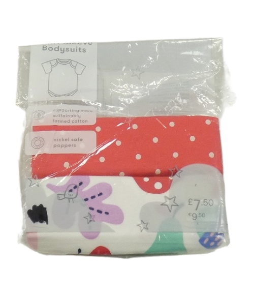 Nové - 2x - Body - Bílé s obrázky, jahodovo-bílé puntíkaté F&F