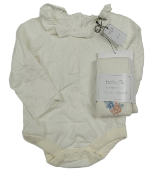 Nové - 2 set - biele body s límečkem + biele pančuchy s kvetmi Tu
