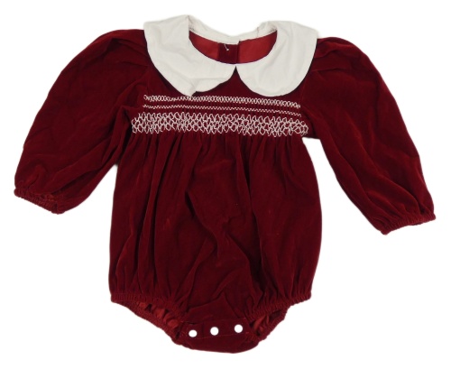 Tmavočervené sametovo/manšestrové body s výšivkou a bielým golierikom