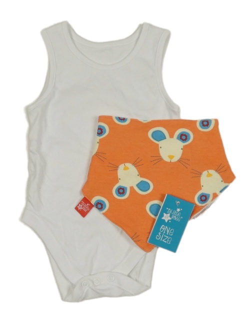 Nové - 2 set - oranžový slinták s myškami + biele body