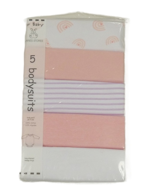 • Nové - 5pack - 2x - ružové + 3x biele body so vzorom a dlhým rukávom Dunnes
