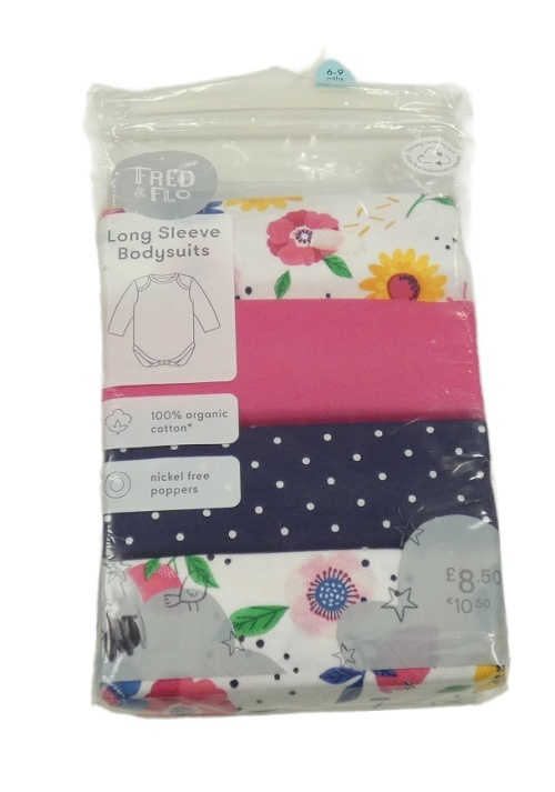 Nové - 4x bielo-ružovo-tmavomodré kvetované body F&F