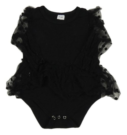 Čierne body so sieťovanymi bodkovaná ymi rukávy a volánem