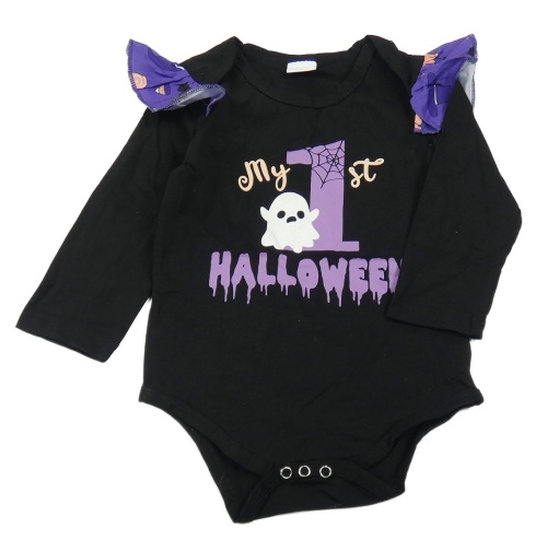 Čierno-fialové body s číslom a duchem a volánikmi