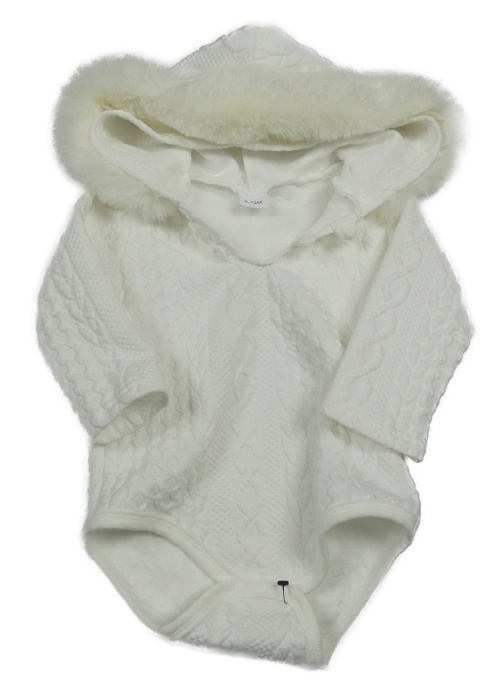 Biele vzorované teplákové body s kapucňou s kožešinou
