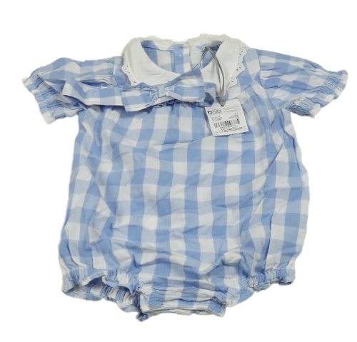 Nové - 2set - Modro-biele kockované plátenné body s límečkem + čelenka Tu