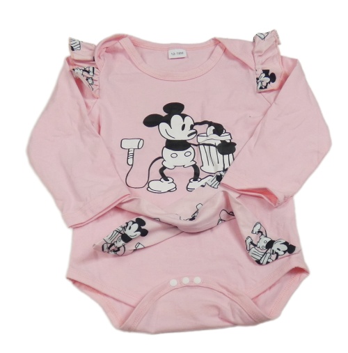 Nové - Svetloružové body s Mickeym a volánky + opasok
