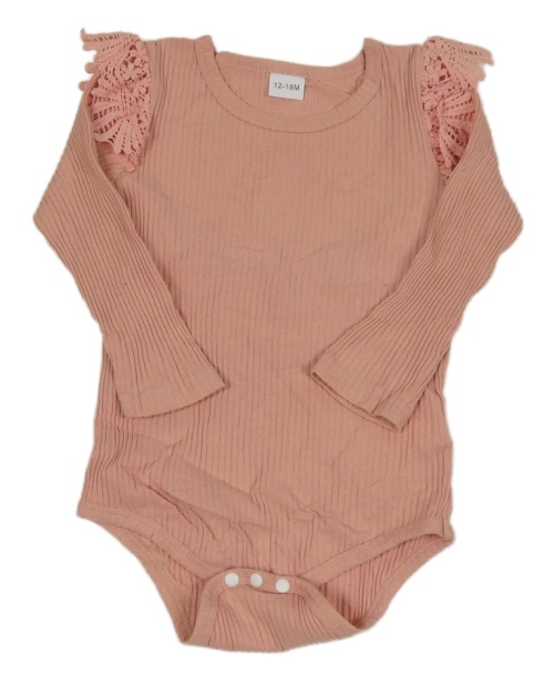 Ružové rebrované body s čipkovymi volániky