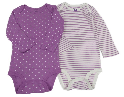 Nové - 2x - Fialové body s motýly + bielo-fialové pruhované body Patpat