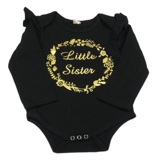 Čierno-zlaté body s nápisom a volánikmi